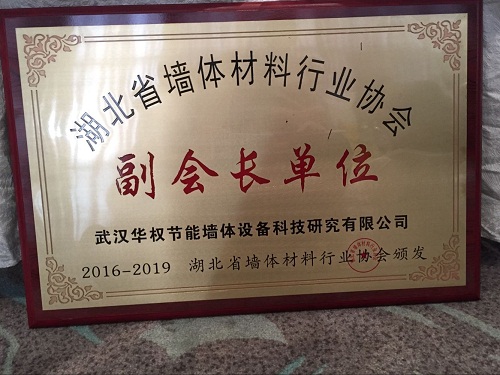 武漢達權集團(武漢華權節(jié)能墻體設備科技研究有限公司是其母公司)授予副會長單位