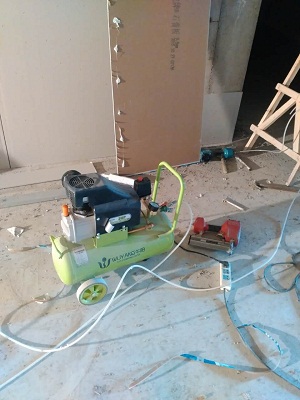 ① 面找平②氣釘槍固定石膏板