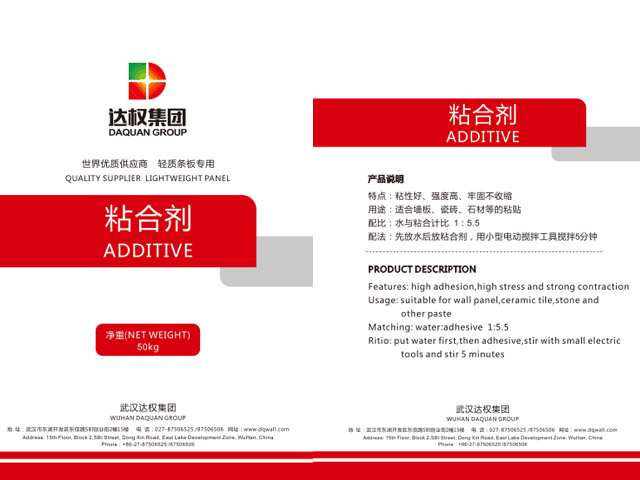 - 特點(diǎn):本品為安裝墻板專用粘合劑,也可直接用作瓷磚、石材等的粘料;具有粘合力強(qiáng)、防裂、防空鼓,方便施工等優(yōu)點(diǎn)。