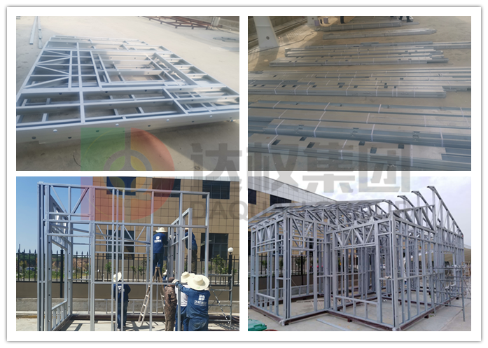 2、輕鋼龍骨安裝:房屋根據(jù)鋼構(gòu)設(shè)計(jì)定制龍骨,該結(jié)構(gòu)體系所有配件均在工廠完成生產(chǎn)加工,直接運(yùn)往現(xiàn)場進(jìn)行安裝,連接部位使用自攻釘進(jìn)行固定。