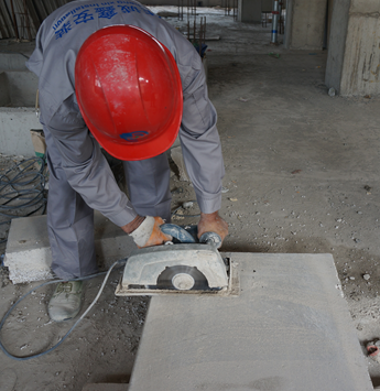 按結(jié)構(gòu)高度,裁切好合適長(zhǎng)度墻板,配好的板板長(zhǎng)應(yīng)按樓層結(jié)構(gòu)凈高尺寸減20mm。
