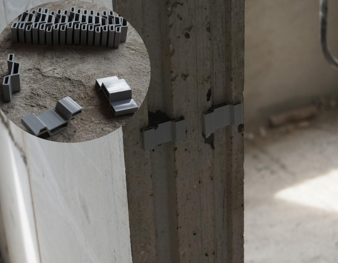 有抗震要求時(shí),應(yīng)按設(shè)計(jì)要求,在墻板與結(jié)構(gòu)接觸面,兩塊條板上下端拼縫處和水平接縫處安裝拉結(jié)筋,拉結(jié)筋使用25cm¢6鋼筋植入結(jié)構(gòu)深度不低于5cm,鋼結(jié)構(gòu)應(yīng)焊接。拉結(jié)筋安裝時(shí)使用鋼尺測(cè)量出預(yù)埋點(diǎn)鉆孔,待墻板安裝至預(yù)埋點(diǎn)旁時(shí),將孔內(nèi)注滿粘合劑,用鐵錘將拉結(jié)筋錘入預(yù)埋孔內(nèi)。
