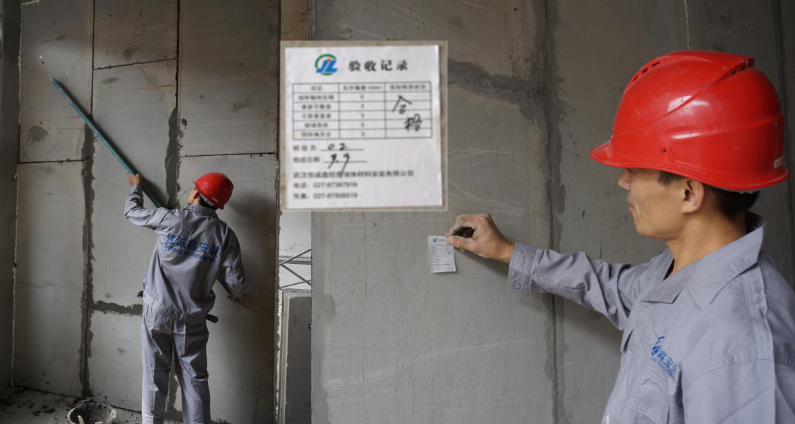 對(duì)所安裝的墻板進(jìn)行全面檢查后填寫(xiě)驗(yàn)收記錄表并粘貼在墻板上。