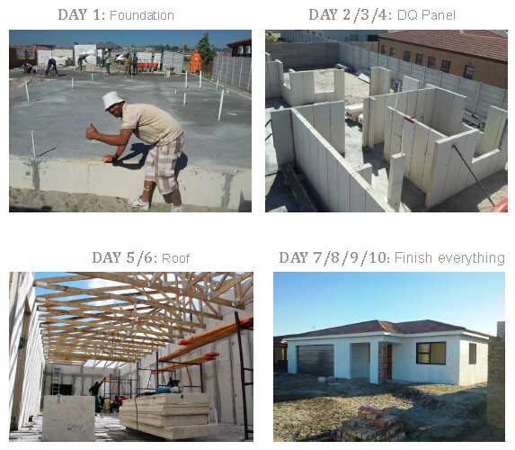 達(dá)權(quán)房屋的主要墻體材料為達(dá)權(quán)輕質(zhì)節(jié)能保溫夾芯墻板,為新型環(huán)保的墻體建筑材料,以4.5毫米厚的硅酸鈣板為面板,以42.5硅酸鹽水泥,聚苯乙烯泡沫,黃沙等優(yōu)質(zhì)原材料為芯料。板材長(zhǎng)度為2440、2270毫米,寬度為610毫米,厚度為60-180毫米。